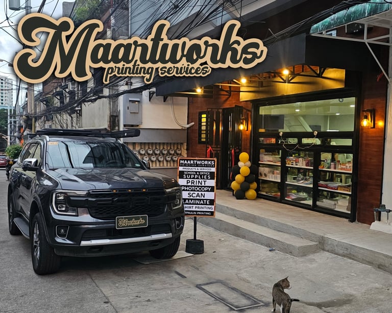 Today, Maartworks Printing Services offers a wide range of personalized and professional printing solutions—from apparel and packaging to marketing collaterals, IT products, gadgets, and office supplies. We turn concepts into impact, combining craftsmanship with modern design to serve businesses, communities, and campaigns across the Philippines.